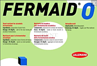 Fermaid O® es un nuevo nutriente de levadura para la fermentación alcohólica. Su formulación contiene 100% componentes naturales derivados de levadura. Fermaid O® puede ser utilizado en vinos blancos, rosados y tintos.