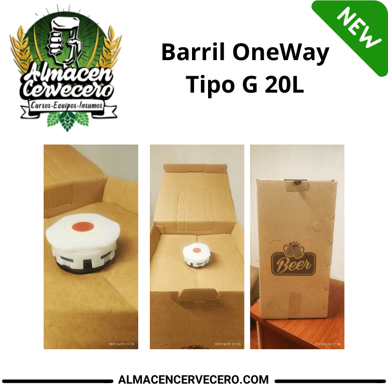 Barril Oneway 20L Pet 1,5 bar CO2. No necesitan sanitización. Se debe despresurizar luego del uso. Producto 100% reciclable y certificable ley REP