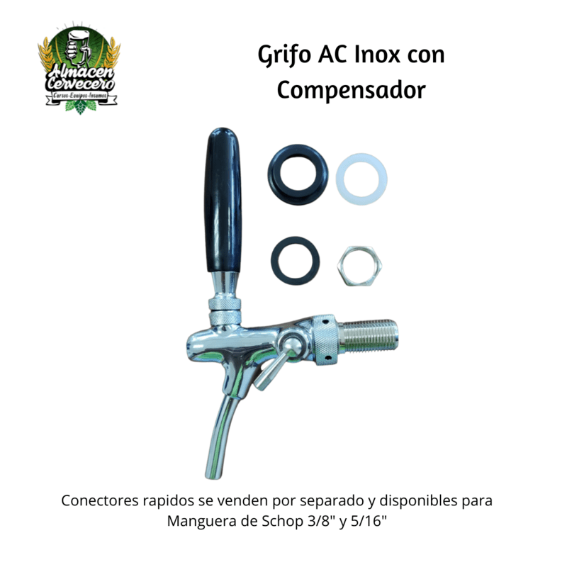 Grifo Almacen Cervecero de Acero Inoxidable con compensador de flujo.