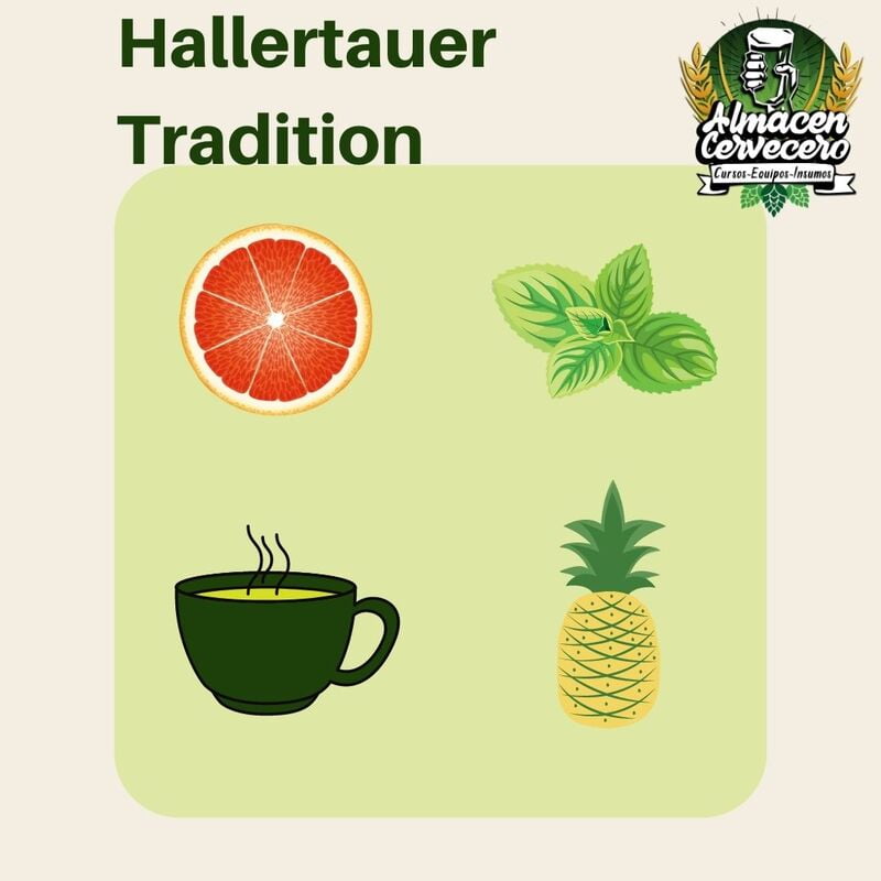 - Variedades de lúpulos similares: Hallertauer Mittelfruh, Styrian Golding
