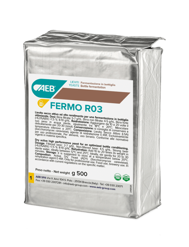 Fermo R03 metaboliza solo los azúcares simples, cosa que facilita la dosificación de los azúcares y la estandarización de la cerveza refermentada.