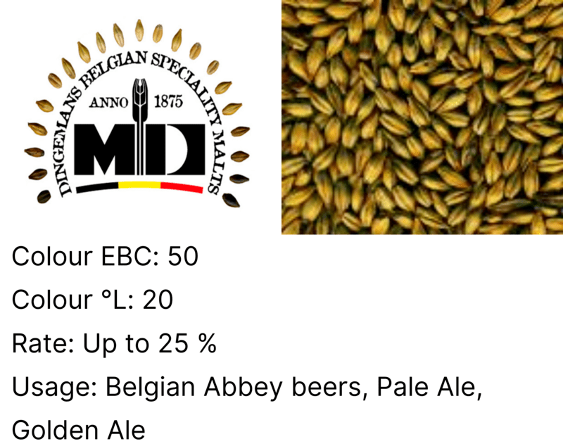 The Cara 50 is a very light crystal/caramel malt use by a lot of Belgian breweries in producing Abbey beers. The malt is produced in the drum. Due to the caramelisation and low drying temperatures its specific taste is achieved.
