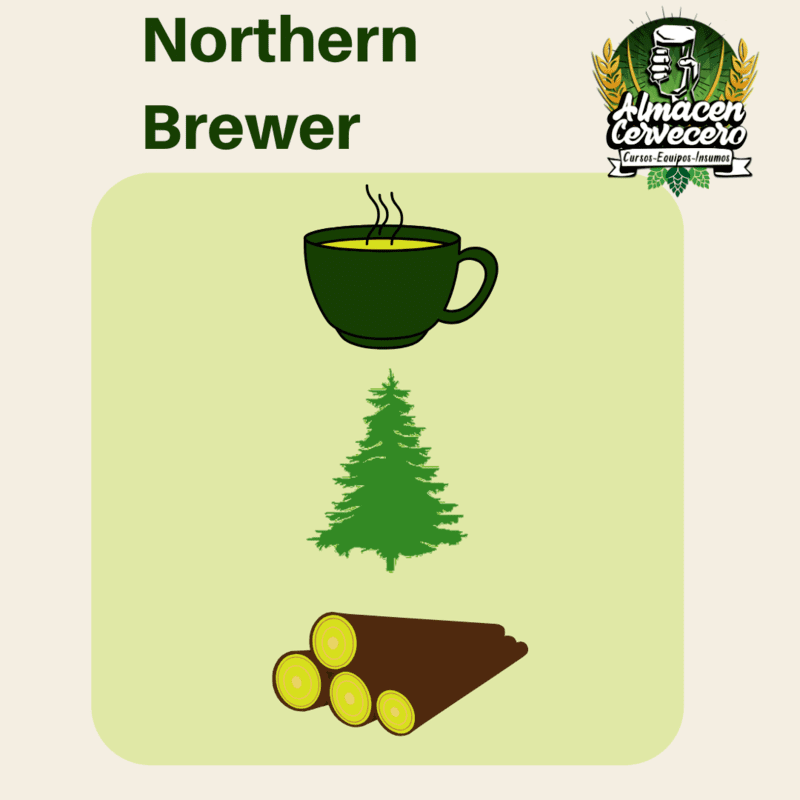 El Northern Brewer se obtiene en Inglaterra como cruce entre Goldings y Brewer's gold para dar nacimiento a un lúpulo de único aroma a madera, hierba y unos toques de menta. Rápidamente cruza el charco y es adoptado por los cerveceros americanos donde se usa, entre otras, para hacer la cerveza Commons californiana.