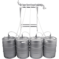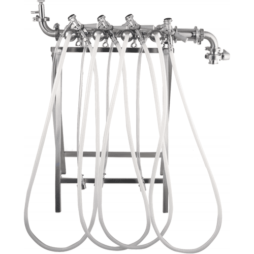 El llenador de barriles Pro de 4 cabezas está diseñado para ser compacto y llenar rápidamente 4 barriles simultáneamente.