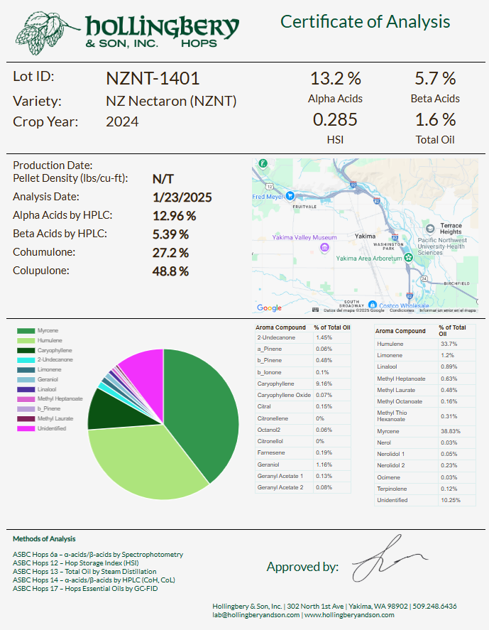 Nectaron® muestra altos niveles de caracteres de frutas tropicales como piña y maracuyá, así como frutas de hueso (melocotón) y cítricos (pomelo). Cosecha 2024 13.2ª