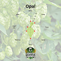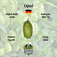Opal es un lúpulo netamente alemán, con un alto contenido en mirceno que proporciona notas de especias y cítricos.