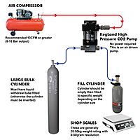 Esta es una bomba de estación de recarga de CO2. Esta bomba le permitirá bombear desde cilindros de alta presión a otros cilindros de alta presión. Esta bomba es compacta y pequeña y puede llenar un cilindro estándar de 2,6 kg en solo unos minutos. La bomba no incluye mangueras de alta presión, pero se pueden comprar en Pertek o en otros proveedores de mangueras de alta presión. Esta es una bomba impulsada por aire, por lo que no requiere energía. Solo un compresor de aire. Recomendamos aire seco limpio y sin aceite para hacer funcionar esta bomba. Cuanto mejor sea la calidad del aire, más durará la bomba. Entonces, si compra esta bomba, también deberá comprarla por separado: 1. Compresor de aire 2. Mangueras de alta presión 3. Escalas