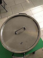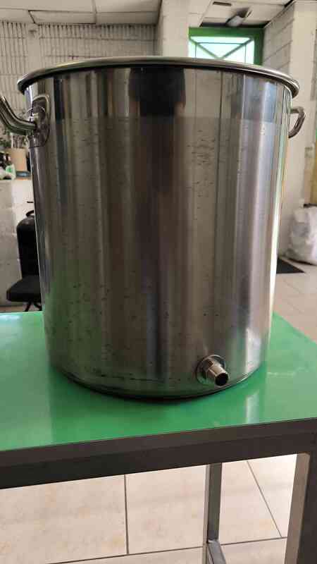 Olla acero inoxidable 33Lt aprox. fondo difusor sin válvula y con la conexión. Ver foto. Dañada. Requiere soldar fisura. Y limpiar "óxido"