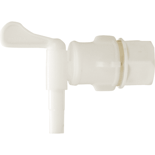 Válvula Plástica HE 3/4" con contratuerca, sello de goma y sistema anti sedimentación. Se conecta directo a la cánula de llenado.