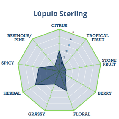 Lupulo Sterling USA T90 9.5%ª Herbáceo y especiado con un toque floral y cítrico.