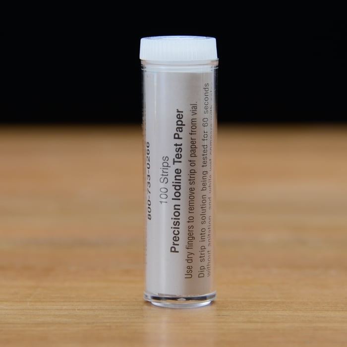 Prueba fuerte de yodo valorable en soluciones de yodóforo. En 60 segundo esto indicará si ya concluyó su maceración. Vial de 100