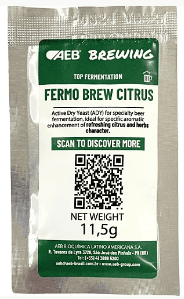 Levadura Seca Activa (LSA) para la elaboración de cervezas especiales, ideal para resaltar notas aromáticas cítricas y herbáceas. FERMO Brew Citrus es una levadura obtenida por hibridación. Puede utilizarse para producir cervezas especiales caracterizadas por perfiles aromáticos complejos, con notas cítricas y herbáceas. NOTAS FERMO BREW CITRUS aumenta los tioles activos en el aroma en las primeras fases de la fermentación. Los compuestos fenólicos (POF+) se producen en las sucesivas fases de la fermentación. Los nutrientes de levadura de la gama FERMOPLUS mejoran aún más el perfil aromático. ESTILOS DE CERVEZA Levadura para cervezas que requieren un perfil de sabor cítrico y herbáceo. CARACTERÍSTICAS AROMÁTICAS Y SABOR Cepa de levadura aromática que imparte aromas de cítricos y hierbas. PROPIEDADES DE ELABORACIÓN CEPA DE LEVADURA Saccharomyces cerevisiae ORIGEN DE LA VARIEDAD Un híbrido AEB natural. ATENUACIÓN APARENTE 65-69% | Promedio TEMPERATURA DE FERMENTACIÓN 11-16°C FLOCULACIÓN Mediana TOLERANCIA AL ALCOHOL 14% ABV ÉSTERES TOTALES Alto H2S (NOTAS SULFURADAS ) Baja POF (NOTAS FENÓLICAS) Positivo STA-1 Negativo Dosis 50 g/hL Dosis Práctica para Homebrewer: 1 sobre para 20l de mosto con OG hasta 1.060