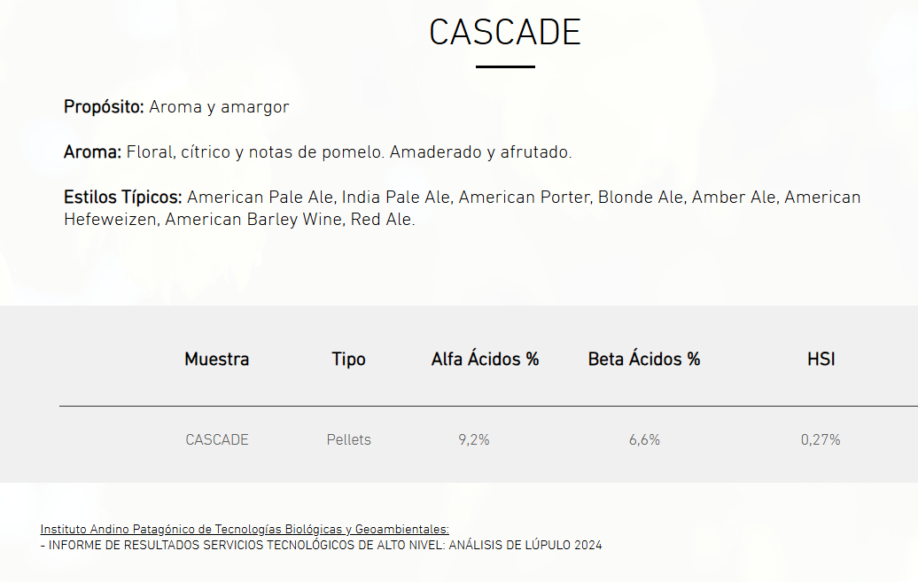 Lúpulo Cascade 1K Cosecha 2023 Perfil resinoso citrico con notas a limoncillo, naranja o carozo.