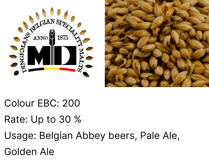 Caramel malt used to brew full-bodied amber beers. Max. use per recipe: 10%. Malt is the main ingredient in the production of beer. It stems from a process of partial barley starch degradation called malting. In the world exist many and different malt varieties, classified according to place of origin and malting technique. Every malt type is defined by its own features, which play a crucial role in the characterization of the beer. These features are colour and taste (sweet, biscuit, caramel, smoked).