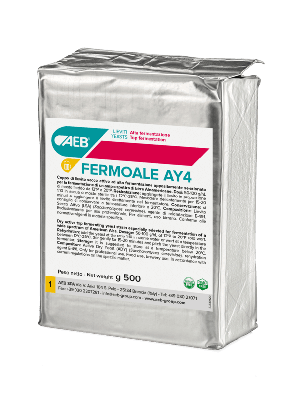 Fermoale AY4 es una cepa de levadura específica, utilizada para la producción de cervezas Ale y otras cervezas de elevada fermentación.